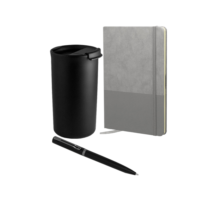 -Bolígrafo con apertura giratoria. Cuerpo metálico en negro mate. Parte superior de hierro y parte inferior de acero inoxidable. Tinta negra